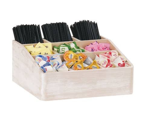 This condiment organizer is a great way to display and hold packets, straws, and creamers. Perfect addition to any coffee station while it offers organization & style!