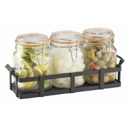 The desirable metal frame of the Rustic Jar Condiment Display leaves nothing to be desired. Guests can easily see what awaits in the jars while still remaining accessible. Choose either 17oz jars or 34oz jars to meet your specific needs.