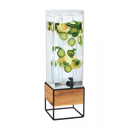 The Madera Acrylic Beverage Dispenser is made of a metal frame and reclaimed wood panels. This is the perfect solution to heavy beverage dispensers thanks to the wire metal frame.