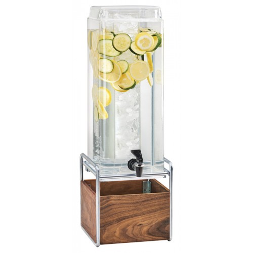 The Mid-Century Beverage Dispenser adds the perfect touch of elegance to presentations. The warm walnut is accompanied by the sleek metal frame to create a perfect blend of old and new.