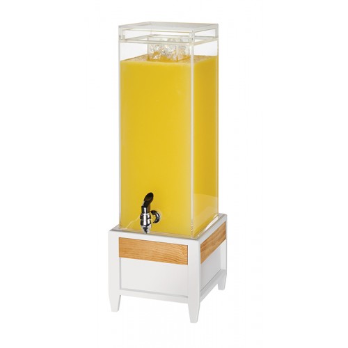 These beverage dispensers are great for parties, catering, or buffet tables. This dispenser stylishly displays colorful juices, water, iced tea, and any other drink of your choice. The white base with a pine strip of wood creates a clean and crisp look that sets this dispenser apart.