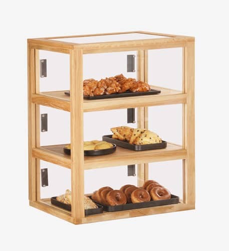 This elegant case display relies on the natural beauty of oak grain to draw customers attention! The subtle elegance helps to showcase your pastries or baked goods and comes in both a square and rectangle design.