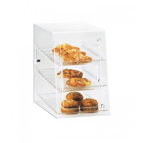 This bakery display will complement any bakery, coffee shop, or market. It features a slant front with a rear and self-serve door for both the server and the customers convenience.