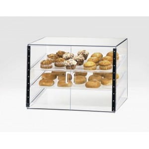 This bakery display will complement any bakery, coffee shop, or market. It features a large slant front with a rear and self-serve door for the convenience of your customers. If you are looking for something simple but modern, this is the display case for you!