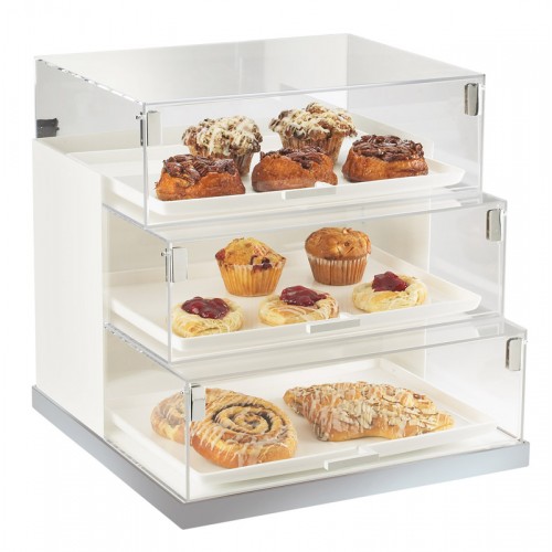 The offset tier of the Luxe Three Step Bread Case Display makes sure it is simple to see products that could otherwise be hidden in the deep, dark, back of the case. The sturdy acrylic ensures that food will stay where it is meant to be, inside the case!