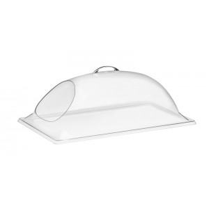 Showcase your delicious foods in your chafer or display tray with this crystal clear dome cover. This product features a dome cover with one end cut out for the convenience of your guests at any buffet, cafe, or bakery.