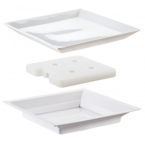The Cold Concept Bowl Set includes 1 Porcelain Plate, 1 Cold Pack, and 1 Plastic Liner. This set is designed to be paired with any of the Cold Concept Bases which are available in Black, White, Stainless Steel, and Bamboo. It's as easy as 1-2-3, simply pick your base style/material, add this set (or other available options including our Stainless Steel Cold Bowl or Porcelain Plate Set) and add a coverfor added freshness!