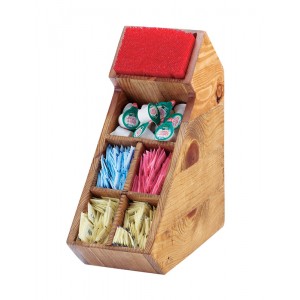 Save your precious counter space with this useful Madera Organizer! The divider is removable to create a way to insert more of one condiment or another. Having the attached stir stick holder reduces clutter and saves counter space!