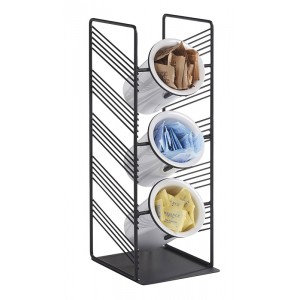 The Portland veritical cylinder display is perfect for housing condiments or flatware. The angled black wire adds rigidity and durability. Cylinders sold separately.