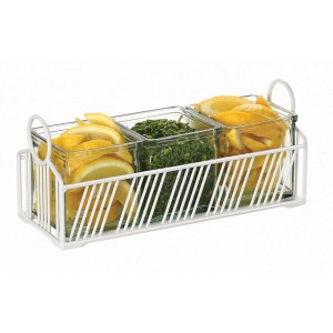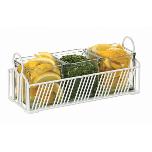 Store your condiments and packets in our stylish new Portland glass Jar display. The angled wire creates an edgy look, while remaining simplistic. Available in either a 3 or 6 jar version. Includes glass jars.