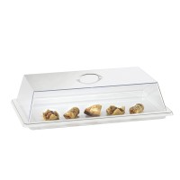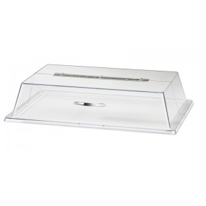 Keep your colorful cookies, decadent doughnuts, or mouth-watering muffins fresh and delicious with this standard bakery tray cover. This bakery tray standard cover features a hinged door that opens along the length of the cover. This hinged cover helps to protect your baked goods while it seals in moisture and keeps them fresh and ready to serve.