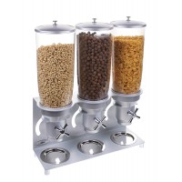 These wall mount platinum cereal dispensers feature the Free Flow mechanism: Simply hold down handle for free flow until desired amount is released. These units maximize convenience and minimize packaging waste and hassle!