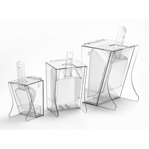 Keep your ice station clean and your scoop out of the ice with these durable freestanding scoop holders. Constructed of durable polycarbonate and featuring a hinged lid and a drip tray, these scoop holders are a great addition to your restaurant, coffee shop, or hotel.