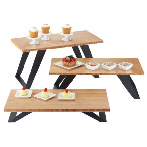 Take your presentations to the next level with the Bamboo Stair-Step Risers, available in heights of 12", 8", and 4". Their environmentally friendly and elegant bamboo tops pair beautifully with the black metal, giving it a contemporary look!