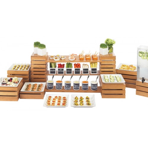 The multi-purpose bamboo crate risers are good for a huge variety of occasions. Use the crates as risers to present a modern take on a classic style, or flip them upside down to create crate baskets for a dynamic new look for you presentation. However you choose to use them, your display will improve!