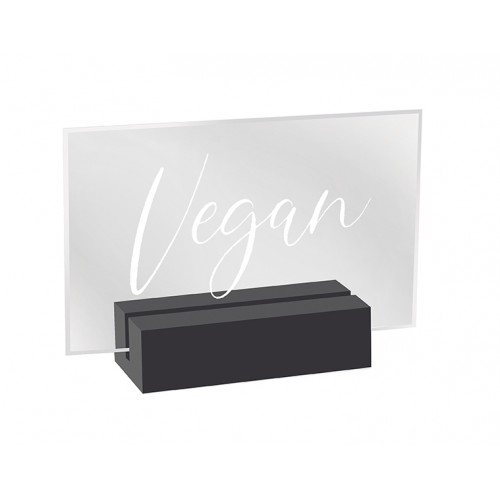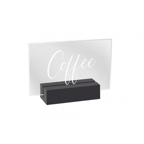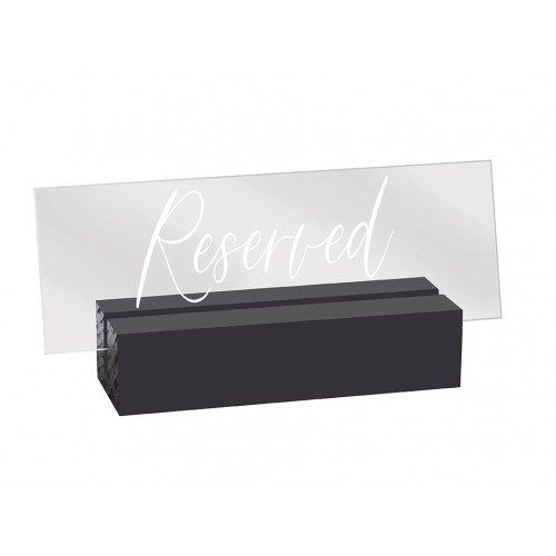 These Black-painted wood base signs prove that it's the little things that can make big impacts! The minimalistic bases holds the crystal clear acrylic secure, while the bright white modern font brings a contemporary design to an often-used item!