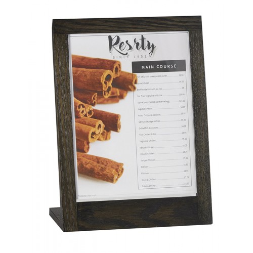 Use the Cinderwood Cardholders to show off your drink specials, menus and happy hour specials. These are made with a dark-washed oak and are available in three different sizes.