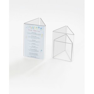 These Classical tabletop 3 sided cardholders come in 2 sizes to fit your needs. Made out of clear acrylic to display your specials, menus, and much more.
