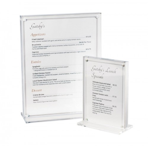 The 2 sides of this clear cardholder come fully apart to allow easy changing of your signage. To put back together, simply line up your card, and place the other end back on top while the magnets effectively hold your card in place.