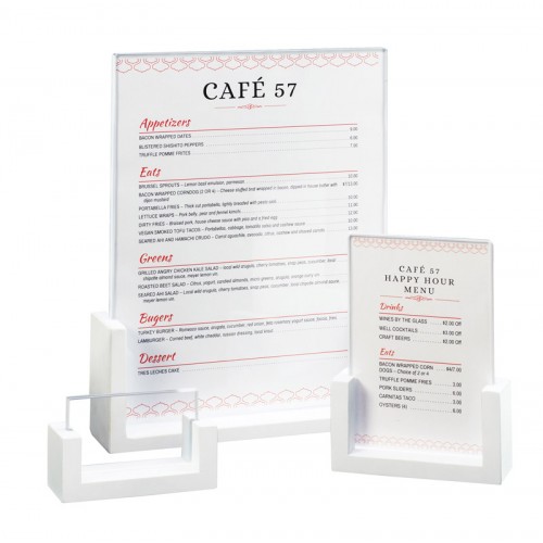 Elegantly display your menus or specials cards with these U-Frame table top cardholders available in both white and black. These cardholders are stylish and modern and will complement any restaurant, buffet, or catered event!