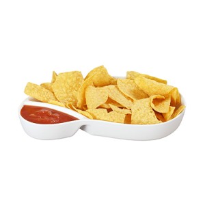This 2-Section Premium Melamine Chip & Dip Bowl is perfect for poolside service!