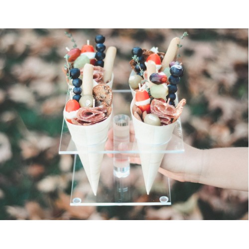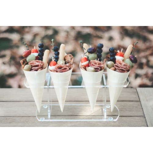 Simple ice cream cone holders that are perfect way to display different types of cones. They can also hold already made ice cream cones while customers pay or the employee makes more. Each cone display holds 4- 2" size cones.