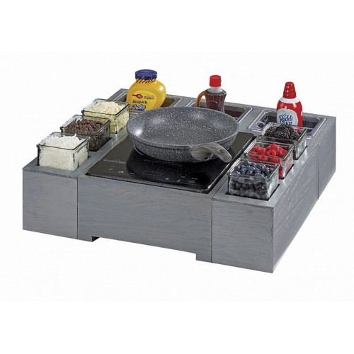 Create your own Action Station by mixing and matching these 3 modular items. Induction Unit, Glass Jar Unit, and 1/6 Pan Unit are all sold separately to allow for maximum variability. Induction Unit includes burner, Glass Jar Unit includes 3 glass jars and cold puck, 1/6 Pan Unit includes 3 1/6 pans and cold puck.