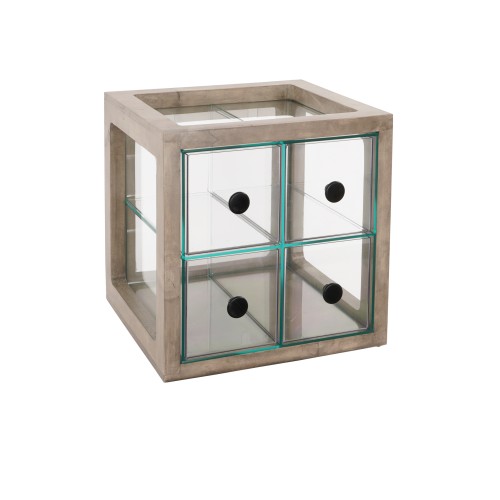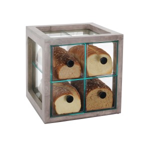 Showcase freshly baked bread, pastries, bagels or any baked goods with this beautifully made bread case. It features a gray-washed pine wood frame and acrylic drawers each with black round handles for easy access while organizing and displaying your goods. This case will complement any bakery, cafe, restaurant, or food service area and is sure to catch the eye of your guests. With wonderfully made goods displayed in a stylish and modern case, you cannot go wrong!