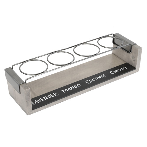 Don't spill the taster! Use the Industrial Taster Caddy to keep tasters safe during transport. The chalkboard front allows consumers to clearly identify the beverage of their choice and the wire metal frame keeps glasses from tipping and spilling.