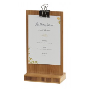 Use this Bamboo Clipboard Menu Holder to showcase your menus and signage. Easily change out your signage with the clip when in a rush! The flared base provides stability to the double-sided frame.