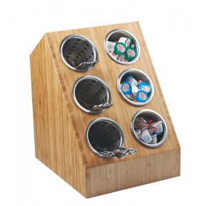 This Bamboo Compartment Spacesaver is a great way to save room! Purchase our perforated cylinders for your flatware or our many colored solid cylinders for your condiments. The classic square design creates a sense of easiness. Combine that with the ability of the bamboo to draw out the brightness in any situation, and this item is a playmaker. Cylinders sold separately.