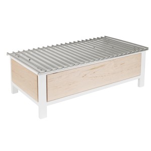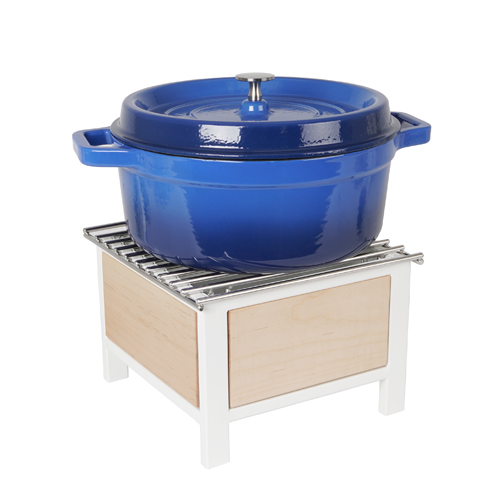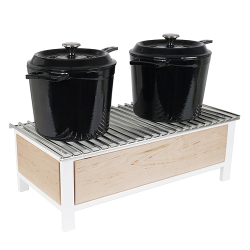 Cook, serve, and showcase your delicious array of foods with this Blonde chafer alternative that strays away from your conventional chafer. With it's modern frame and bold grill, it will complement any buffet table at your restaurant, hotel, or catering event!