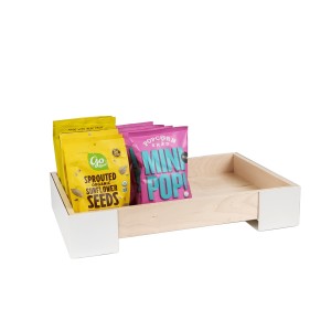 The Blonde bin-style merchandiser is an easy way to display snacks, chips, bars and more without compromising on style. The riser promotes organization to keep countertops clutter-free and the black and white contrasts creates a visually appealing design for guests to admire!
