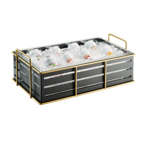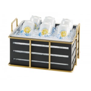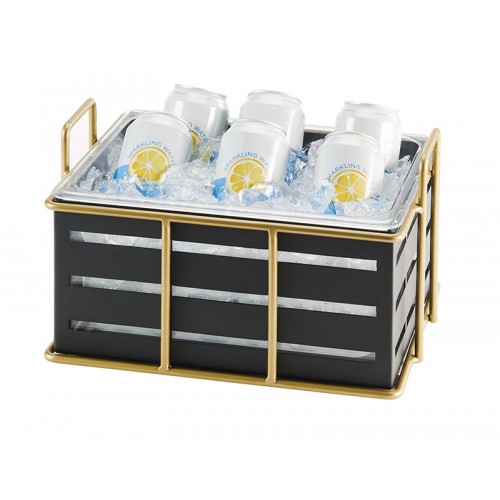 Add new life into your existing displays with the classy Empire Ice Housing! The cutouts on the black base allow light to pour through to light up the ice from the bottom, giving your refreshments a new shine while the gold wire frame adds a unique twist to this contemporary piece.