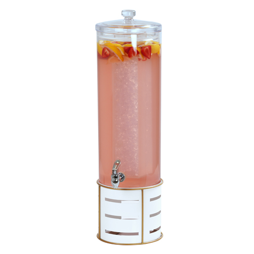 The Empire Round Beverage Dispenser will enhance the look of any beverage. With its unique round base made of metal and subtle gold wire accents, this beverage dispenser is the perfect addition to your display!