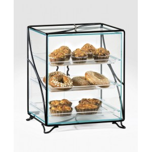 This Aqua display case features front or rear door, making it ideal for both self-service stations at your bakery, hotel, or breakfast buffet, or attendant-manned serving lines at your restaurant. Its appealing glass green acrylic and modern wire frame will draw customers attention to your freshly baked doughnuts, pastries, scones, fruit tarts, or dinner rolls. With the trays, it is allowing you to create multi-level serving and display platforms.