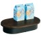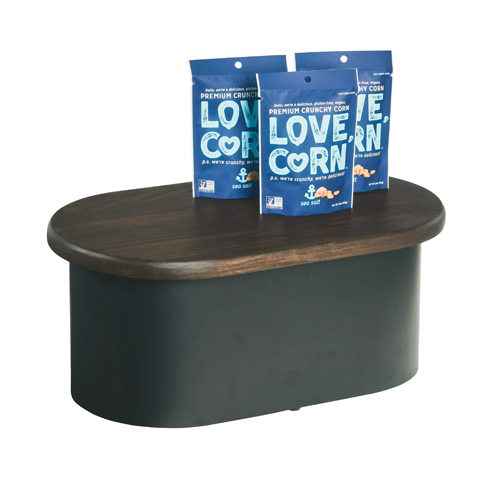 Create a dynamic accent to any presentation with our Heritage Oval Risers featuring a dark brown oak top and black metal base. The modern color blocking feature creates a trend-forward display to help showcase pastries, signage, treats, and more!