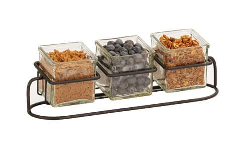 Display your square jars with this unique black wire tiered display!
