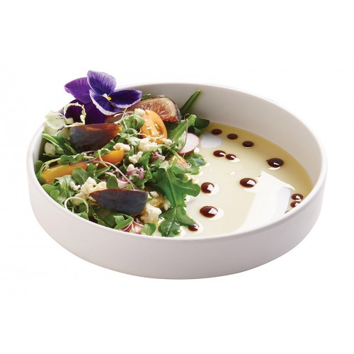 Use this dazzling white melamine plate to display appetizers, entrees and more! They are stackable to increase storage capabilities when not in use and also come available in our "Stoneware" color.