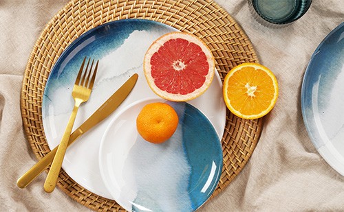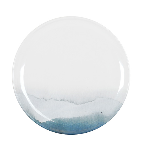 Thoughtfully designed with interntional details, the Pacifica Premium Melamine Dinnerware Collection is inspired by the blues of the ocean and the watercolor design brings the coastal elements to life on the Glossy Coupe Plate.