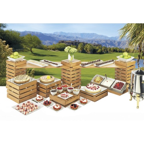 Create a unique and stylish food presentation with these rectangle shelves that can accompany Cal-Mil's Bamboo and Midnight Bamboo Crate Risers. Use them on their own or paired with another product for enhanced style. Available in four sizes, these shelves are easy to rearrange and customize to your style and location