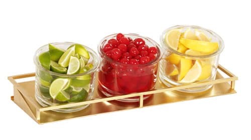 Featuring a Shiny Gold Base, this stunning jar holder base holds 3-16 ounce round glass jars, perfect for displaying on your bar!