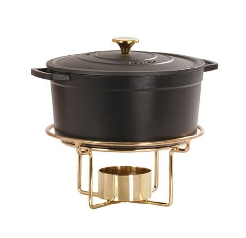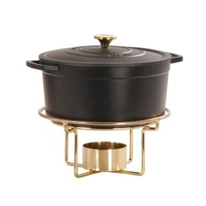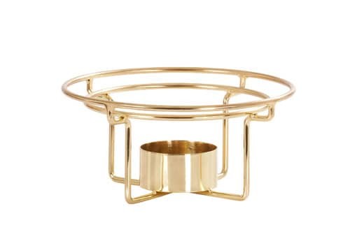 This unique alternative chafer design features round shiny gold wire & a fuel holder at the base!