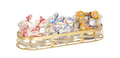 This gold oval Monaco jar holder creates an upscale feel for a variety of environments. The elegant Brass Plated metal is durable and can help to draw attention to wherever the unit is placed.