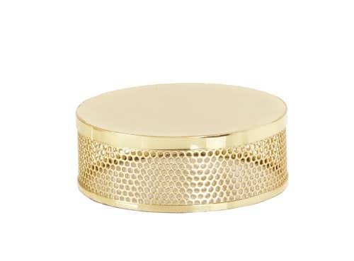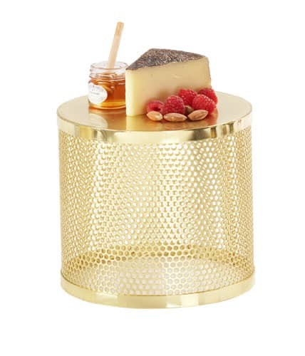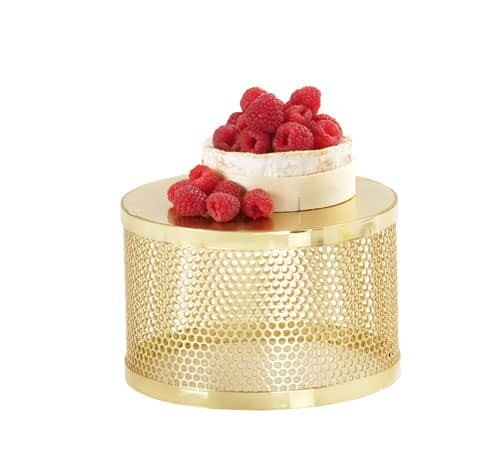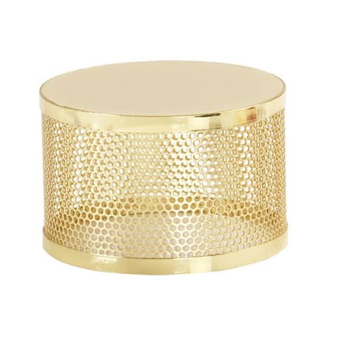 These round shiny gold Monaco risers feature a stunning perforated detail and are perfect for adding any size platter or tray to create elevation to your display!