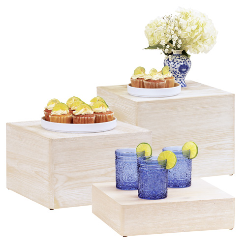 Add dimension and save space with these elegant coastal inspired Newport wood risers. Featuring a cubed and rectangle style, with softened round edges, these risers are a great way to modernize any presentation while keeping table tops organized and clutter free.