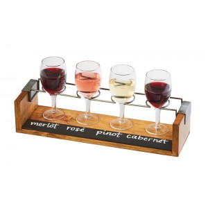 Don't spill the wine! Use the Industrial Wine Taster to keep wine tasters safe during transport. The chalkboard front allows consumers to clearly identify the wine of their choice and the wire metal frame keeps glasses from tipping and spilling.